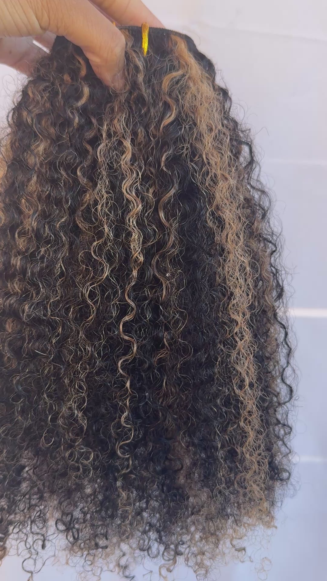 Cé clip-ins are the perfect color blend that allow you to achieve a seamless highlighted look. Each clip has neutral blonde blocked highlights with natural black alternating. This highlighting pattern enhances natural highlighted look.